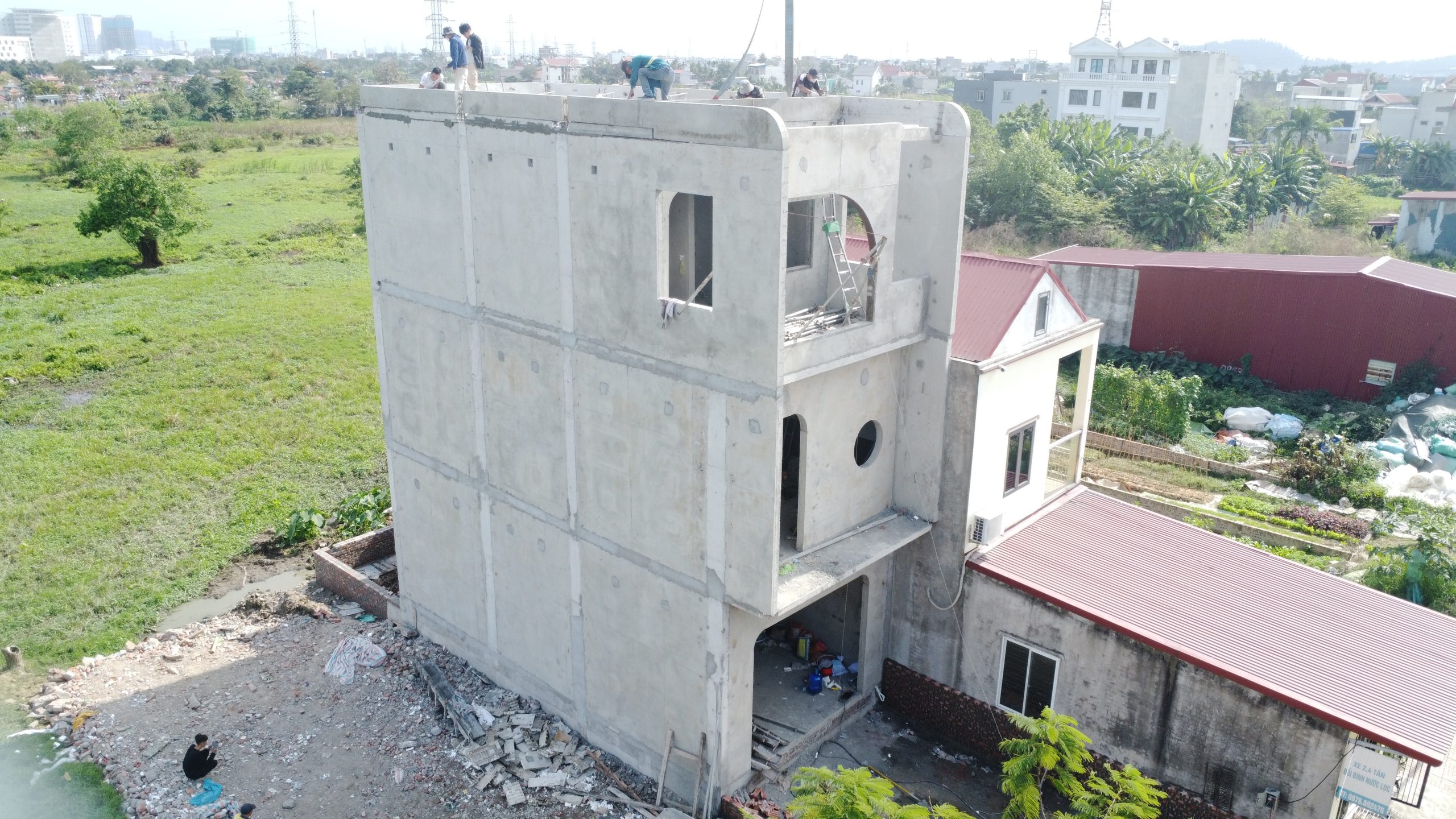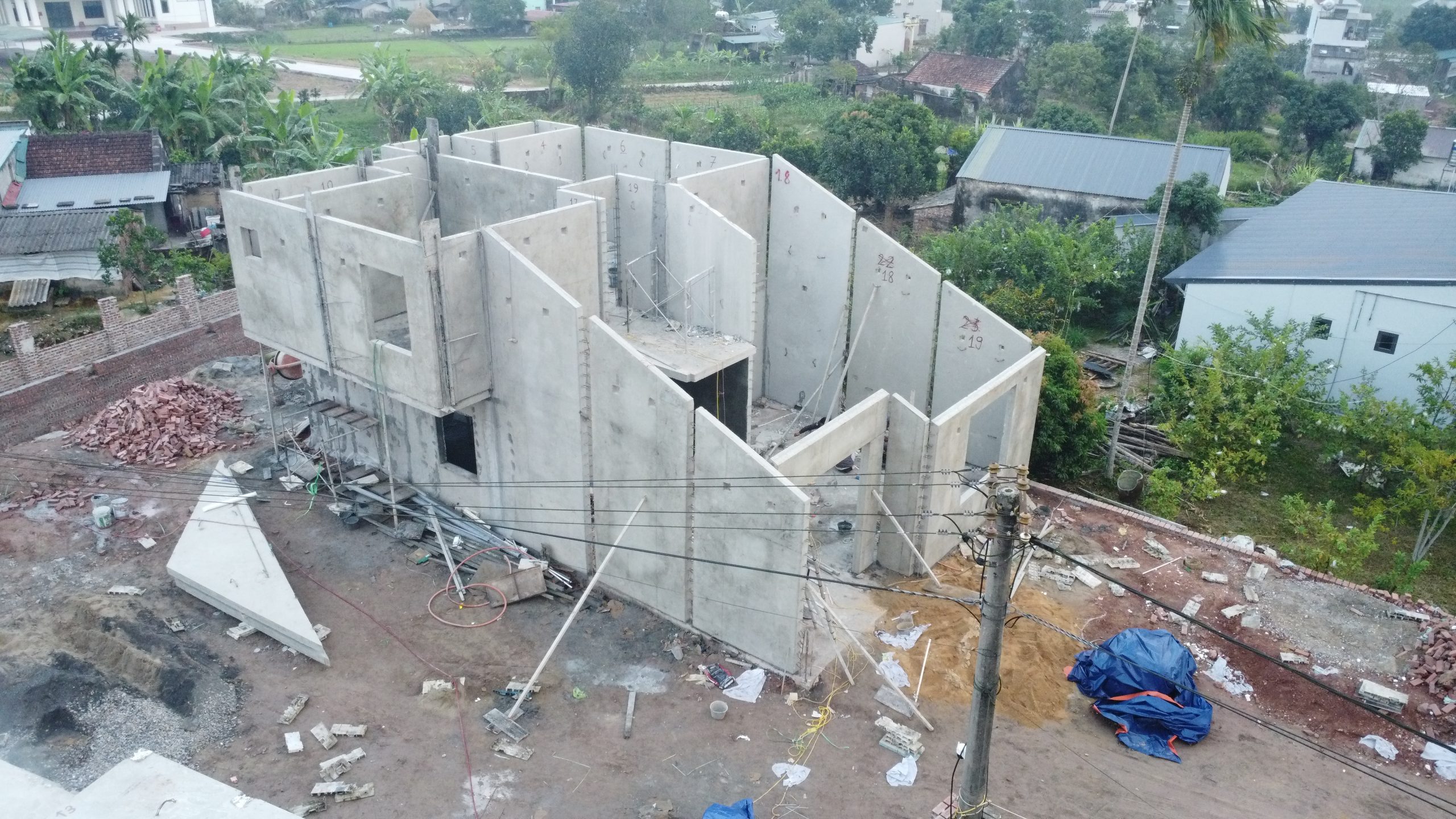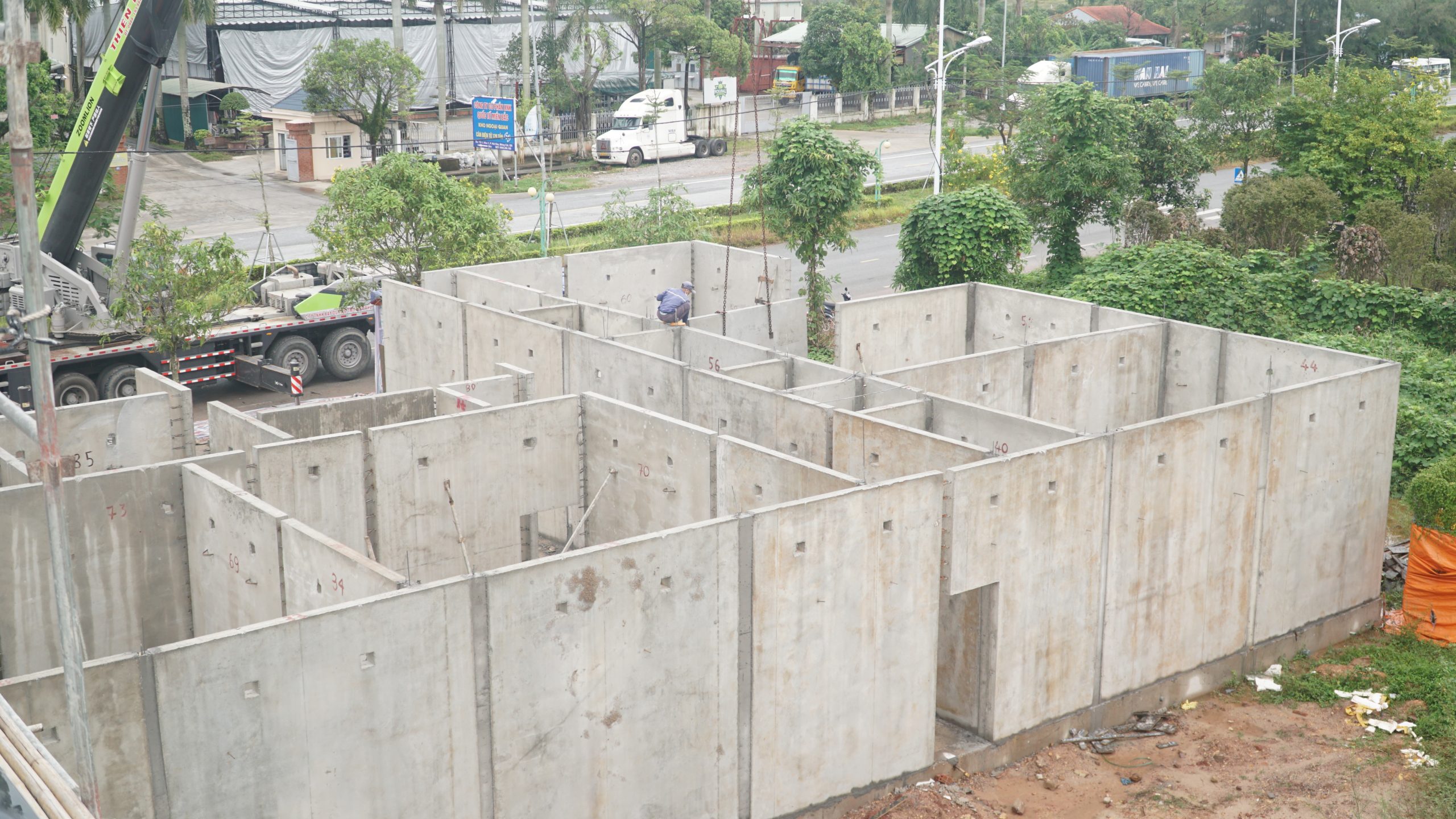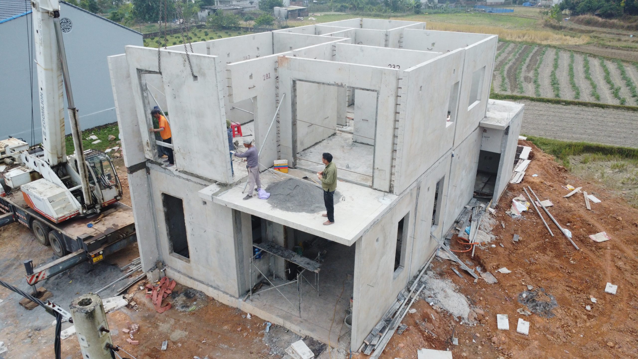 Được thi công từ những cấu kiện bê tông đúc sẵn như tường, cột, dầm, sàn, bể nước, bể phốt. Tất cả đều được sản xuất tại nhà máy với độ chính xác cao.
